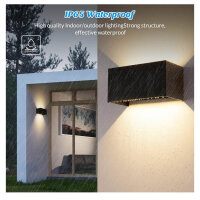 4 Stück 24W LED Wandleuchten Schwarz, Modellnr: WLS-24W, Produkttyp: Innen/Außen Wandlampe, Merkmale: Auf und ab einstellbarer Lichtstrahl, warmweiß 3000K, IP65 wasserdicht, ideal für Außenbeleuchtung.