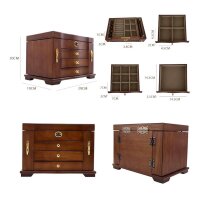 ACMHNC Schmuckkästchen Holz, Schmuckkasten Groß Damen, Schmuckaufbewahrung Vintage mit Spiegel und Schloss, 4 Ebenen mit 3 Schubladen, für Ketten Ohrringe Uhren