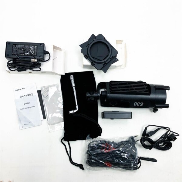 Godox S30 Focusing LED Light with Aspherical Optical Lens, 30W Spot Brightness, Dimmable with CRI 96+, 5600K Multiple Power Supply for Indoor and Outdoor Photo Video Interviews