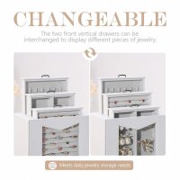 Homde Jewelery Box with Real Glass Window Necklaces Hooks Jewelery Box Jewelery Cabinet for Necklaces Rings Earrings Bracelets Gift for Women White
