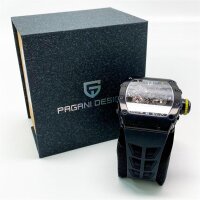 Pagani Design 1738 Tonneau Herren-Quarzuhr, Japanisches Uhrwerk VH65, Skelett-Zifferblatt, Armband aus Gummi, wasserdicht, rechteckig, quadratisch, Herrenuhr