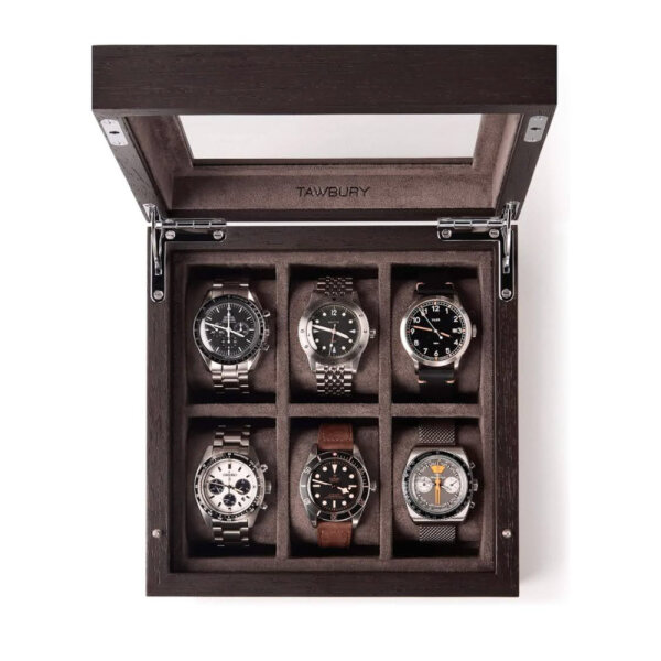 TAWBURY Watch Box Wooden 6 Watches Luxury Watch Box with Glass Lid Watch Box 6 Watches Watch Box Men's Wooden Watch Box Women's Watch Storage Watch Case 6 Watch Box Cassod Wood