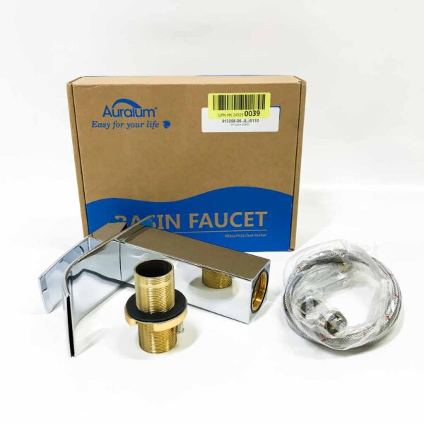 Waterfall Faucet Bathroom, Auralum New Improved Silent Bathroom Faucet, Stainless Steel Sink Faucets, 30% Water Saving, Chrome Plated